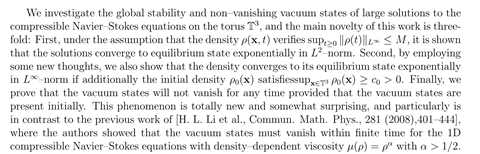 报告题目:Global Stability and Non--Vanishing Vacuum States of 3D