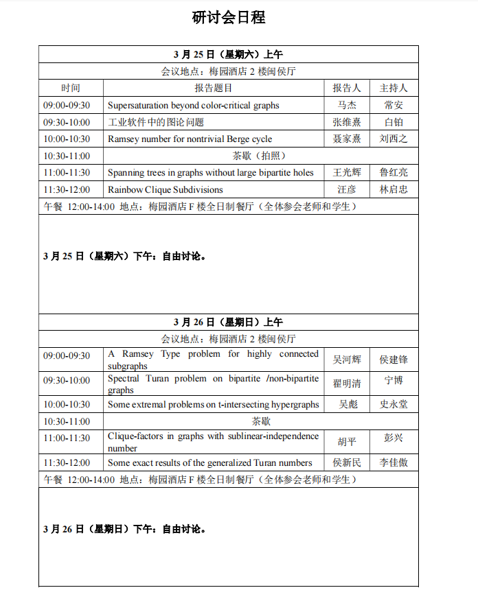 2023年天元数学Ramsey-Turan以及相关图论问题研讨会