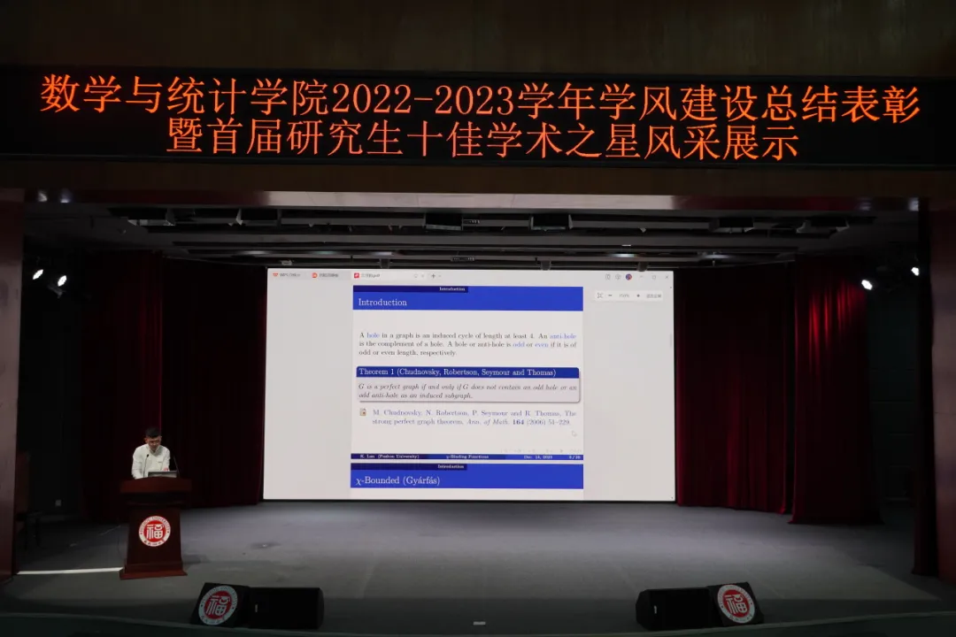 行健不息,天道酬勤。希望所有数统学子以本次学风建设总结表彰大会中受表彰的先进个人和集体为榜样,见贤思齐,创先争优。在科研创新领域向十位研究生学术之星虚心请教,敢于追求专业学术和科研创新的进步,努力成为专业基础扎实和科研实力深厚的新时代数统好青年。
