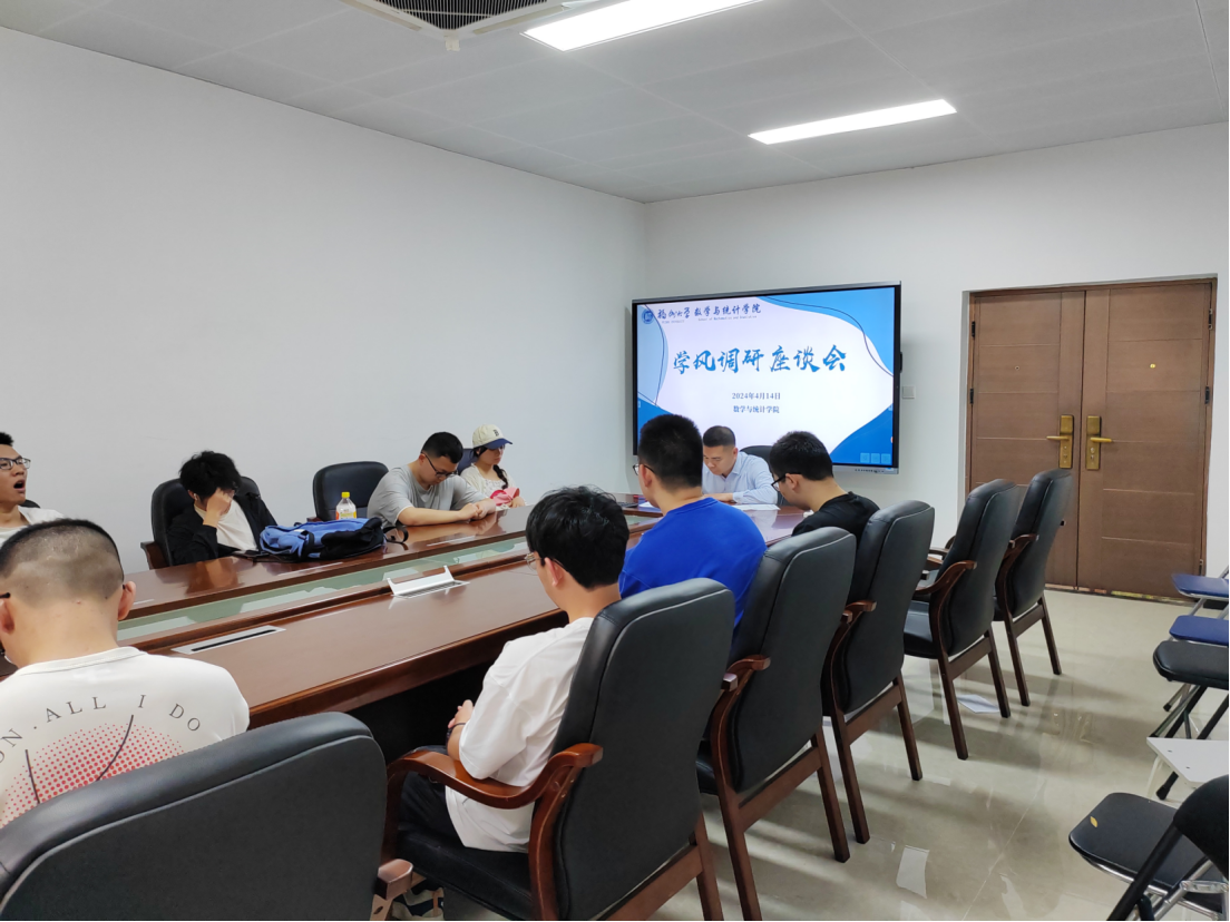在院210会议室召开学风调研座谈会,学院党委副书记沈庆斌老师、专职辅导员舒婧妍老师以及学生代表出席本次会议,会议由党委副书记沈庆斌老师主持。
