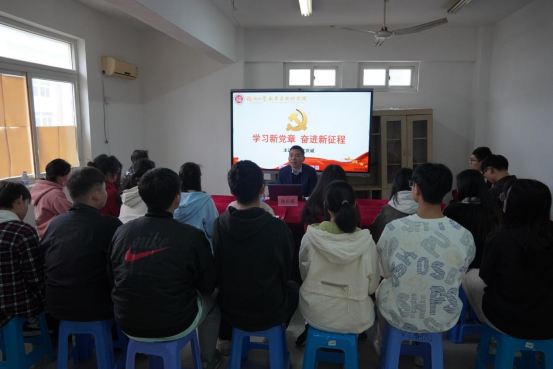 “一站式”学生社区共享活动室,为同学们讲授《学习新党章,奋进新征程》的专题党课。