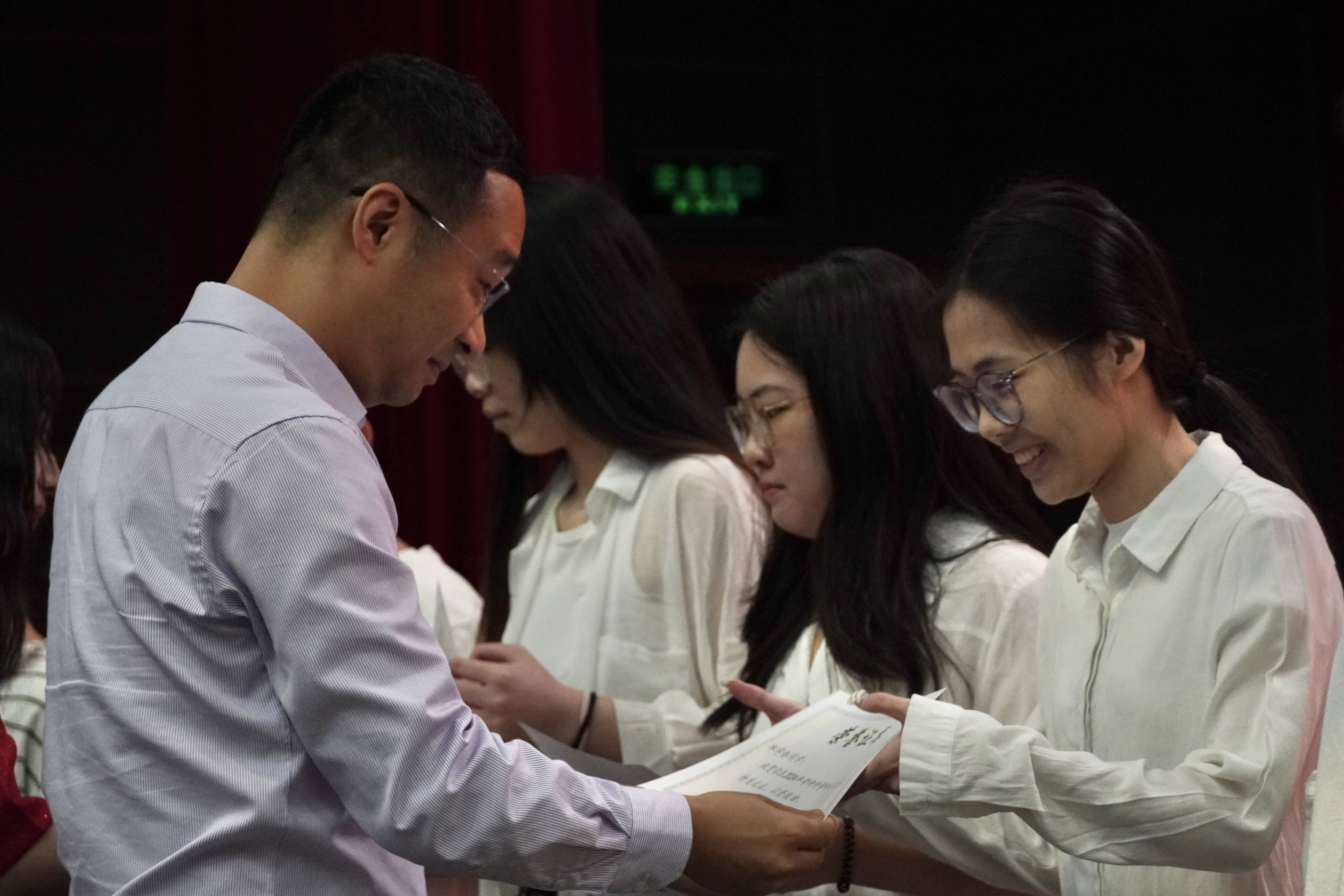 程航副院长宣读2024届升学录取表彰名单,郑世珠书记、刘勇进院长、程航副院长、曾庆厚博士依次为受表彰同学颁发证书和纪念品,以表彰他们四年以来的辛勤耕耘,并鼓励他们在未来的学习道路上继续努力,再创佳绩。