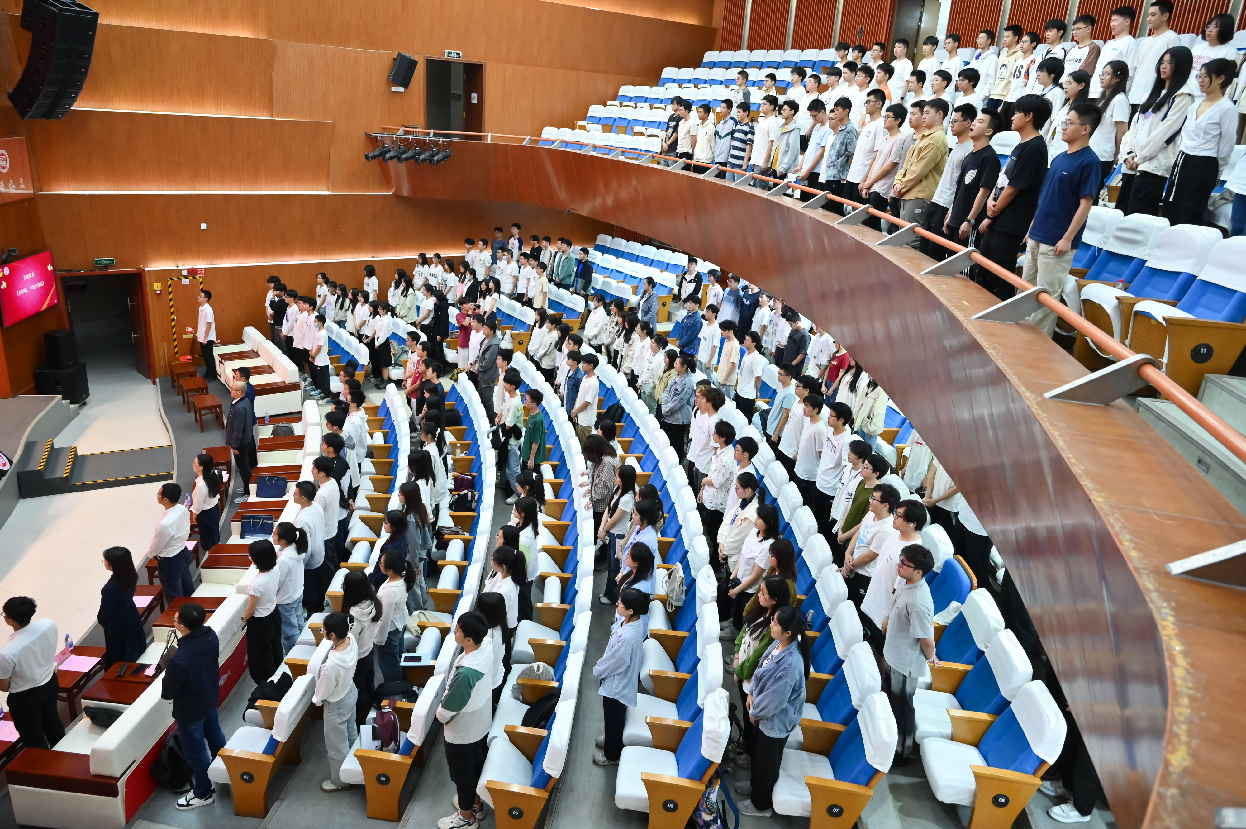 在旗山校区图书馆博学厅隆重举行纪念五四运动105周年表彰大会暨第三届上善好青年颁奖典礼。学院党委郑世珠书记、院长刘勇进教授、副书记沈庆斌、副院长程航教授、院工会主席吕书龙副教授、信息与计算科学系林智锋博士、团委副书记权斌、辅导员舒婧妍和傅源源,获奖代表和青年师生代表,以及平安产险福建分公司人事行政部经理江航和招聘经理杨丁威等400多人参加本次大会。大会由学院党委副书记沈庆斌主持。