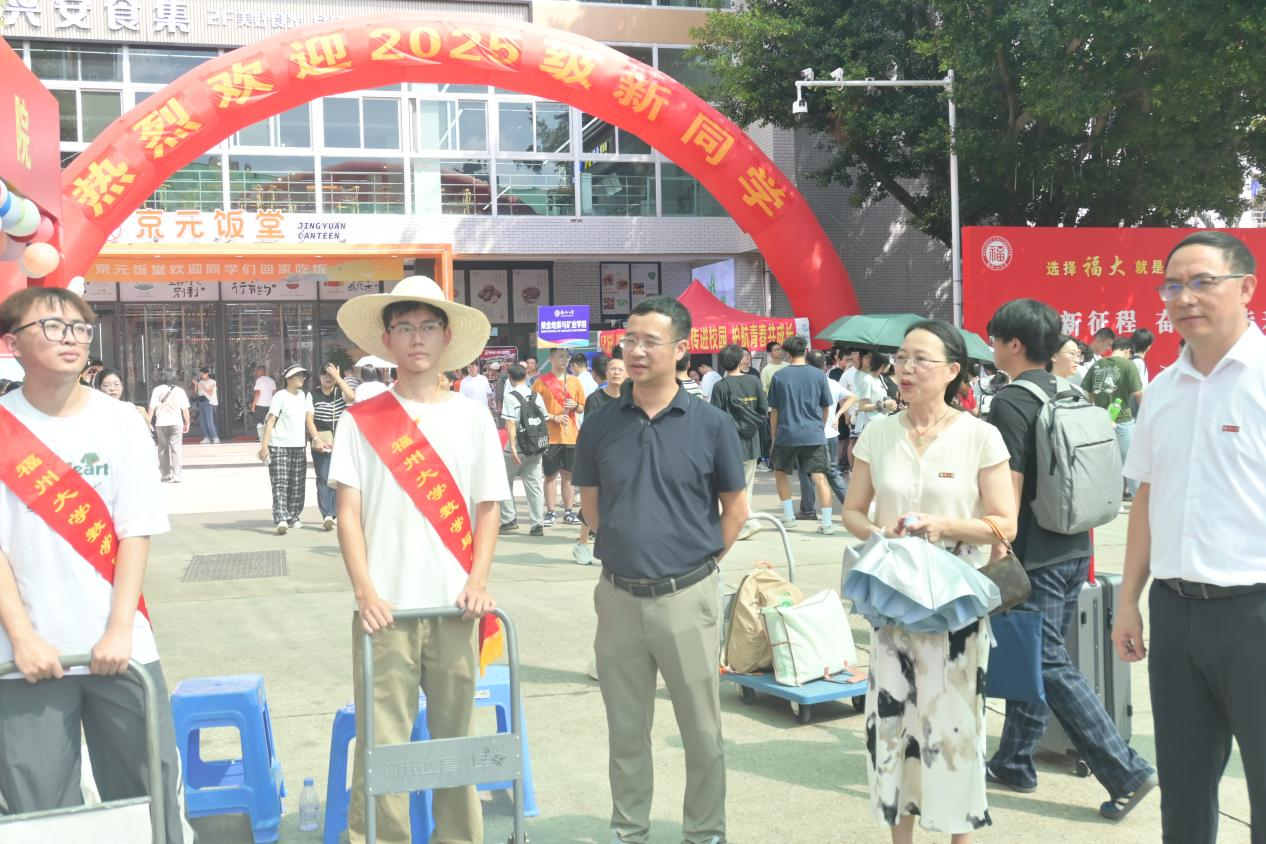麻豆传媒 党委陈国龙书记来到学院迎新报到点,慰问志愿者,并对迎新工作表示肯定。院党委书记郑世珠、院长刘勇进教授、党委副书记蓝荣聪等也逐一检查各项工作,与新生亲切交流,勉励他们珍惜大学时光、立志专业报国。