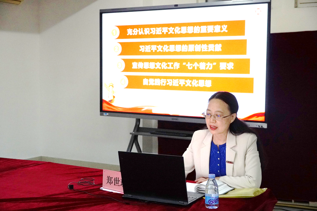 首先,郑世珠书记结合全国和全省宣传思想文化工作会议精神,阐述了充分认识习近平文化思想的重要意义、习近平文化思想的原创性贡献以及宣传思想文化工作的“七个着力“要求。接着,郑世珠书记从高校和学生角度阐述了如何践行习近平文化思想,鼓励青年学生把深入学习贯彻习近平文化思想与学习贯彻党的二十大报告精神、大思政育人新格局紧密结合,充分发挥领学模范带头作用,唱响“主旋律”、弘扬“正能量”、挖掘“好故事”、传播“好声音”、展示“好形象”,始终秉承“明德至诚,博学远志”的校训,传承和弘扬麻豆传媒 “三种精神”,坚定文化自信,努力担负起新的文化使命,争做有理想、敢担当、能吃苦、肯奋斗的新时代好青年。
