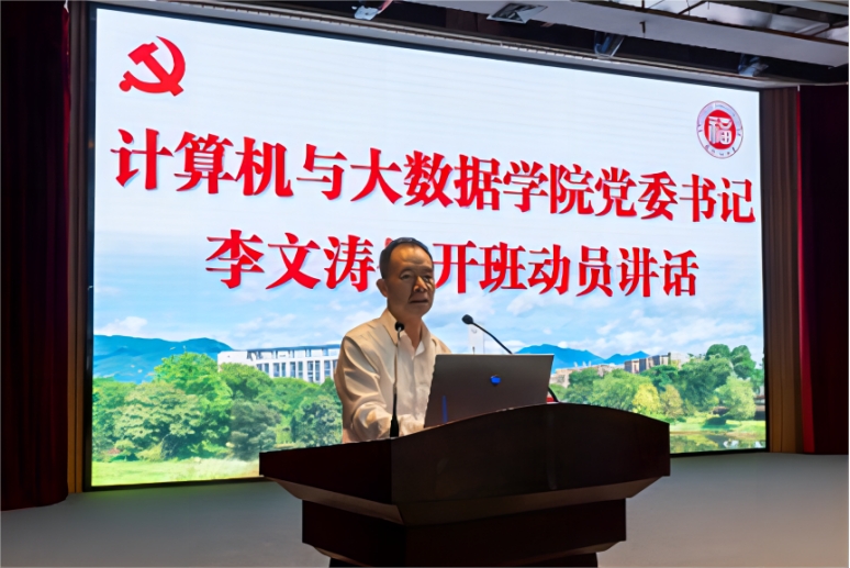 最后,由计算机与大数据党委书记李文涛作开班动员讲话。李文涛书记对在座的同学入选发展对象表示表示热烈欢迎和祝贺,同时也对同学们提出了三点要求:一、坚定理想信念,端正入党动机,信仰共产主义和中国特色社会主义。运用马克思主义立场、观点、方法,学习“四史”特别是党史,增强“四个意识”,坚定“四个自信”,坚决维护党中央权威;二、明确培训任务,珍惜学习机会。在本次培训中要认真听讲、研讨,确保学有所获,提升理论水平和党性修养;三、勇担时代责任,以民族复兴为己任,不负时代和人民期望。加入党组织后,要做青年表率,提升自我,接受考验,成为新时代合格党员。