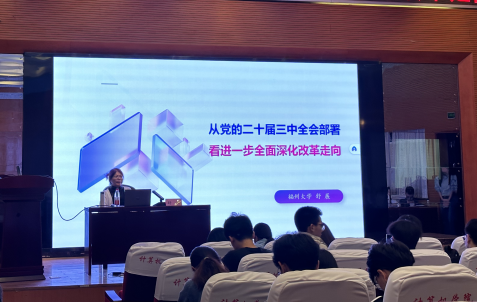 舒展教授于计算机学院七号楼报告厅,为发展对象培训班的学员们讲授了《从党的二十届三中全会部署,看进一步全面深化改革走向》第二讲专题党课。课程伊始,舒教授以个人经历为引,分享了党的十一届三中全会及改革开放为她的生活带来的变化,进而基于从党的二十届三中全会的时代背景,强调了全面深化改革的重要意义。