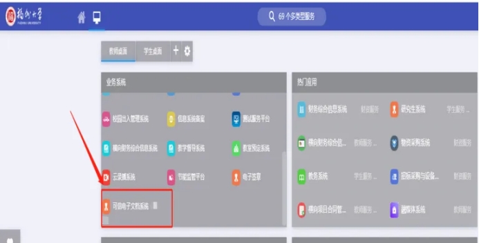 1、登录麻豆传媒 网上办事服务大厅(//ehall.mdcmvip.com/)业务系统栏选择“可信电子文档系统”或智汇福大APP在学生服务选择“可信电子文档系统”。
